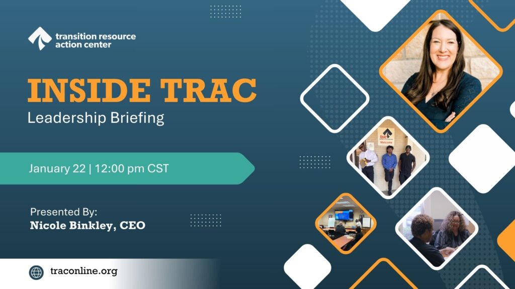Join us for an exclusive Inside TRAC: Leadership Briefing, a private virtual event offering our closest partners a first look at TRAC’s 2026–2027 strategic direction. Led by CEO Nicole Binkley, this session will provide insight into how TRAC is strengthening outcomes for disconnected youth and preparing for the next chapter of growth and innovation.